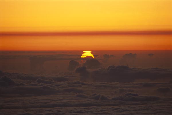 Partially eclipsed Sun seen rising from the summit of Mauna Kea. |